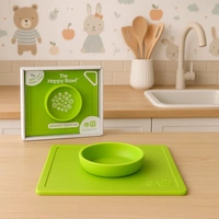 Silikonowa miseczka do jedzenia dla dzieci z podkładką 2w1 Happy Bowl zielona, EZPZ