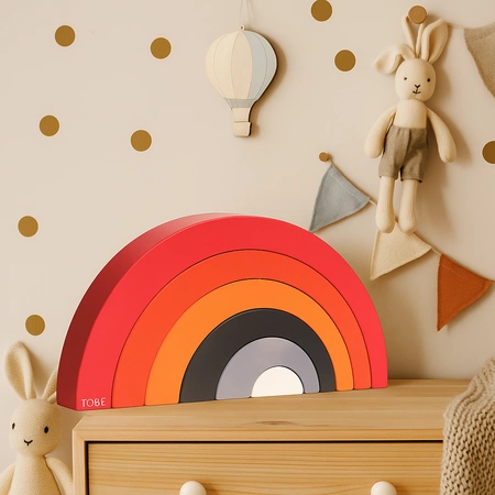 Drewniane klocki TOBE - klocki tęcza, łuki, piramida dla dzieci, BAJO