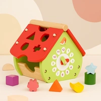 Drewniany sorter kształtów Domek - sorter z 8 klockami, figurami, Janod